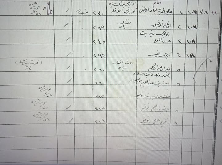 اليكم الاسماء ونقلناها حرفيا كما هي في سجل النفوس مع سنة ولادة الشخص وهي هجريه حولناها لكم إلى الميلاديه لتسهيل الاستيعاب . لقد أشير إلى الرتب العسكريه لهؤلاء إلا اننا لم نذكرها نظرا لعدم إلمامنا باللغه العثمانيه وعلم العسكر .